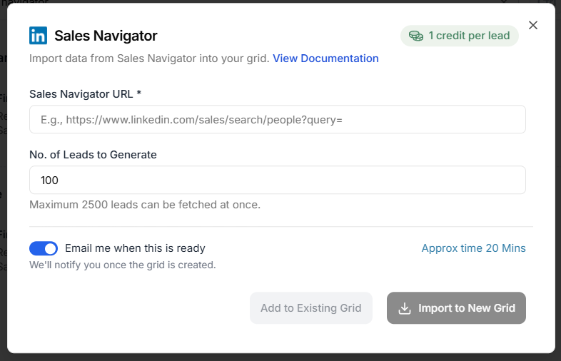 - Paste the Sales Nav URL