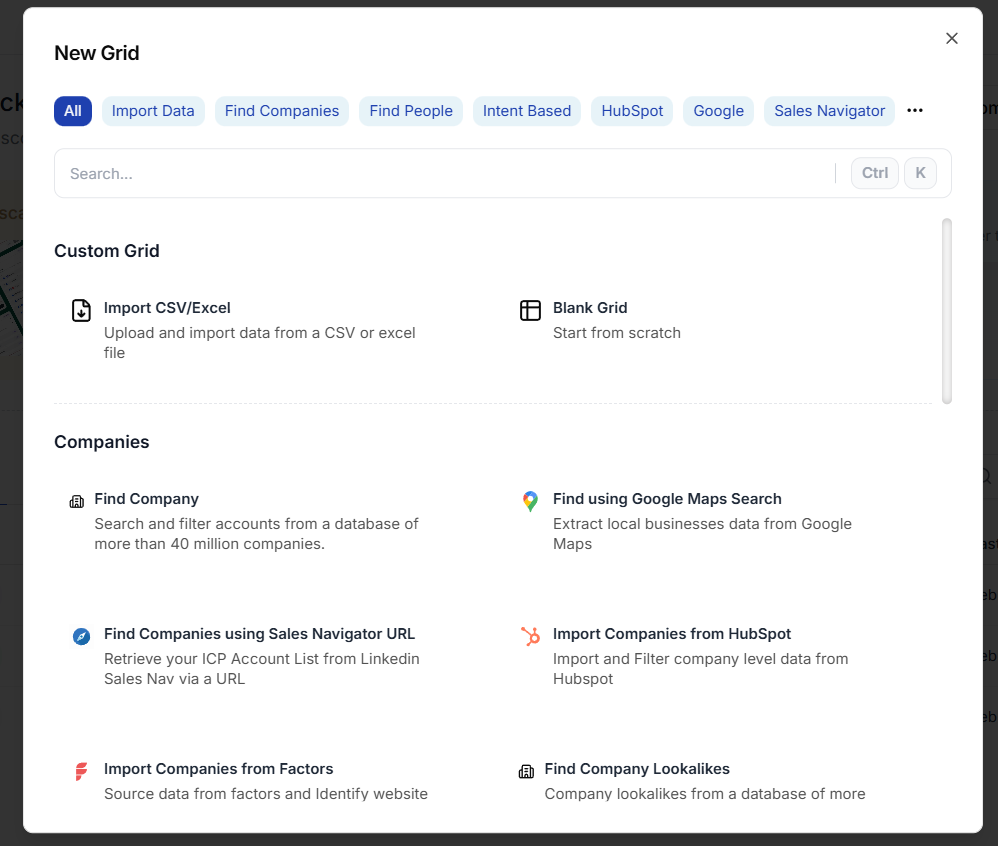 - other sources like HubSpot lists, Salesforce reports, tables, and more