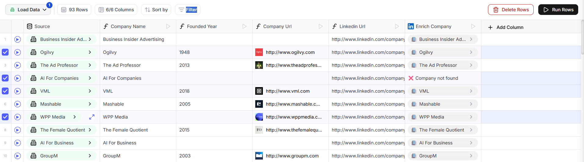 - Click Run rows.